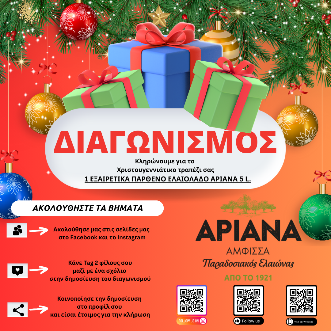 ???? Κληρώνουμε μία συσκευασία των 5 λίτρων Εξαιρετικό Παρθένο Ελαιόλαδο ΑΡΙΑΝΑ????
