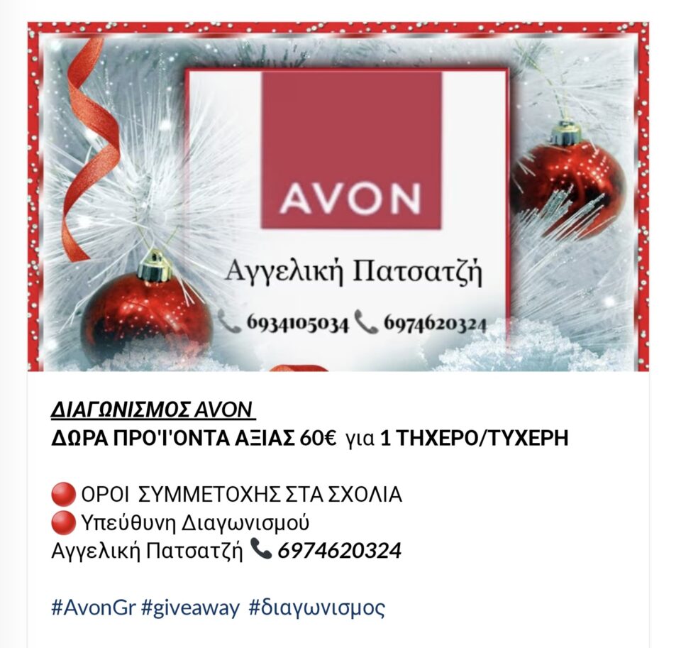 Καλλυντικά-Κοσμήματα-ΑξεσουάρΔΙΑΓΩΝΙΣΜΟΣ AVON by admin5 Δεκεμβρίου, 20230 1 ΤΥΧΕΡΟΣ/ΤΥΧΕΡΗ ΚΕΡΔΙΖΕΙ ΠΡΟ’Ι’ΟΝΤΑ ΤΗΣ ΕΤΑΙΡΙΑΣ AVON ΑΞΙΑΣ 60€. Ημερομηνία Λήξης Διαγωνισμούday 25 of Δεκέμβριος in the year 2023Link Διαγωνισμούhttps://www.instagram.com/reel/C0fLGP1IBVL/?igshid=MzRlODBiNWFlZA==