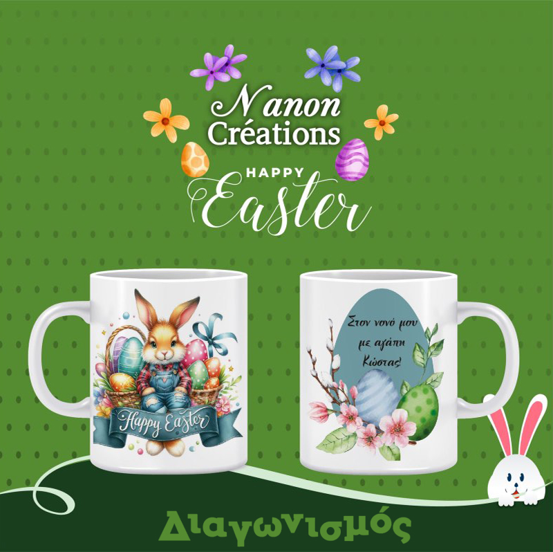 2 κούπες με πασχαλιάτικο σχέδιο με μηνυμα ή με φωτογραφία και μήνυμα δικό σας.