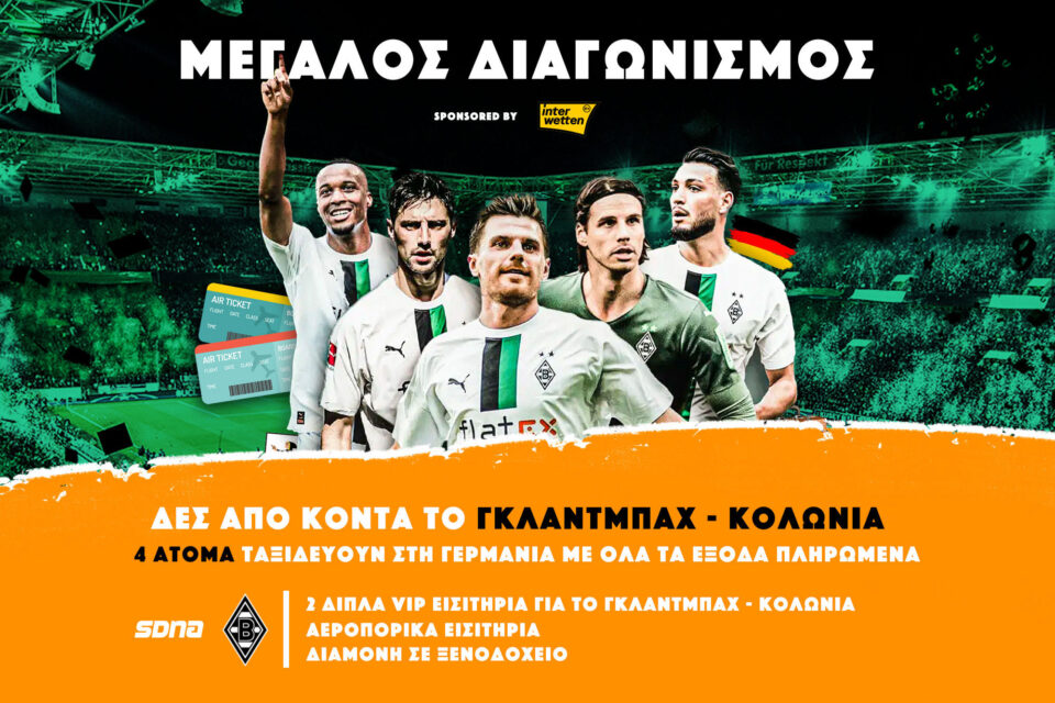 ✅ 2 διπλά VIP εισιτήρια για τον αγώνα Γκλάντμπαχ – Κολωνία στο Borussia-Park