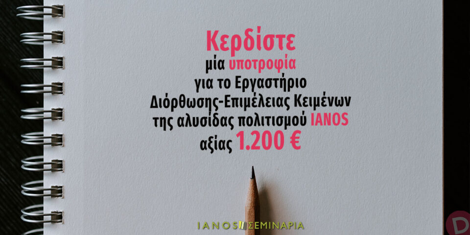 Διάφοραdiastixo.gr | Κερδίστε μία υποτροφία για το Εργαστήριο Διόρθωσης-Επιμέλειας Κειμένων της αλυσίδας πολιτισμού IANOS, αξίας 1.200 € by admin13 Φεβρουαρίου, 20240 Μία υποτροφία για το Εργαστήριο Διόρθωσης-Επιμέλειας Κειμένων της αλυσίδας πολιτισμού IANOS, αξίας 1.200 € Ημερομηνία Λήξης Διαγωνισμούday 6 of Μάρτιος in the year 2024Link Διαγωνισμούhttps://diastixo.gr/diagonismoi-2/21925-ianos-dia-13022024