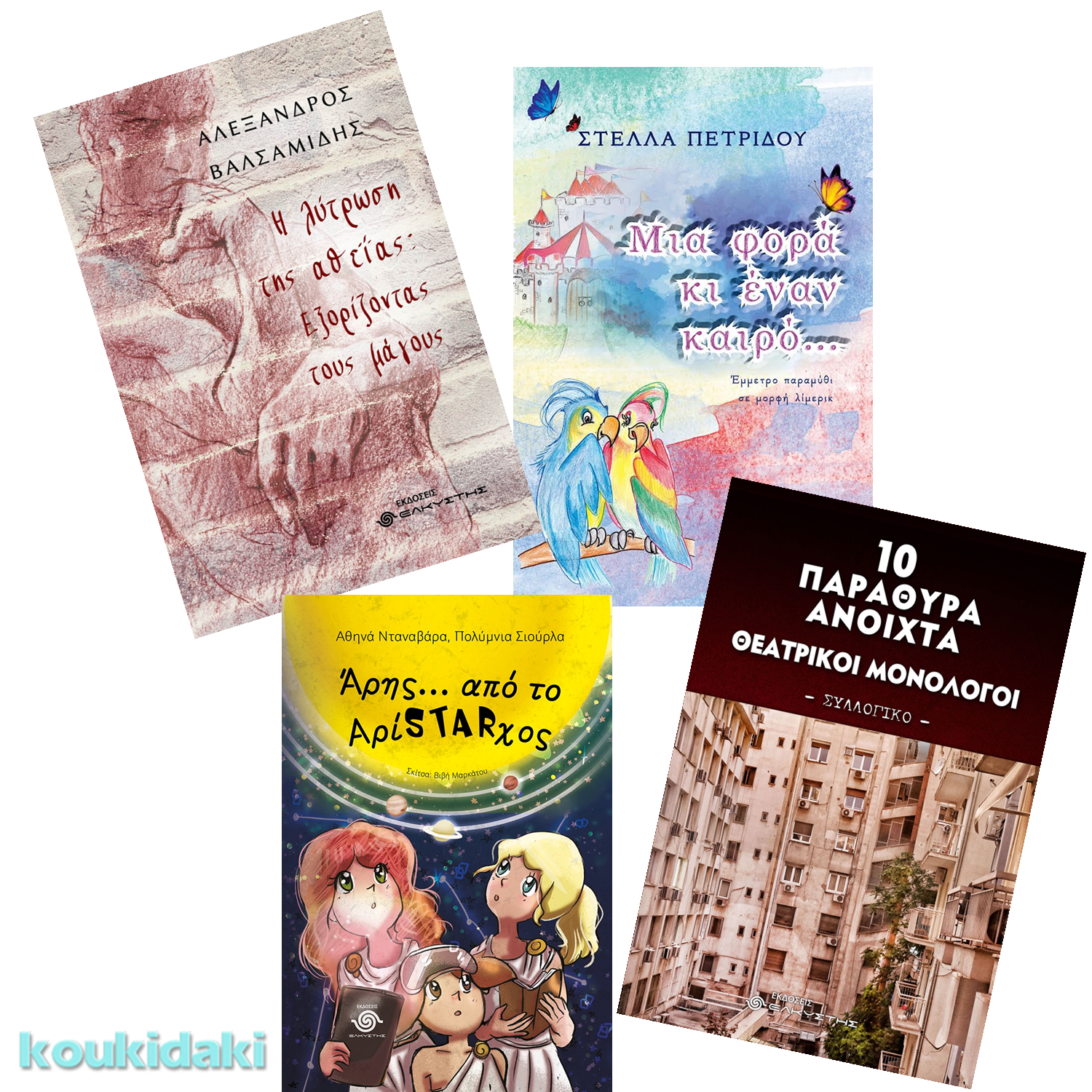 Κερδίστε τους τέσσερις τίτλους: «Μια φορά κι έναν καιρό» Στέλλας Πετρίδου, «Άρης… από το ΑρίSTARχος» Α. Νταναβάρα και Π. Σιούρλα, «Η λύτρωση της αθεΐας» Αλέξανδρου Βαλσαμίδη, «10 παράθυρα ανοιχτά» Συλλογικό