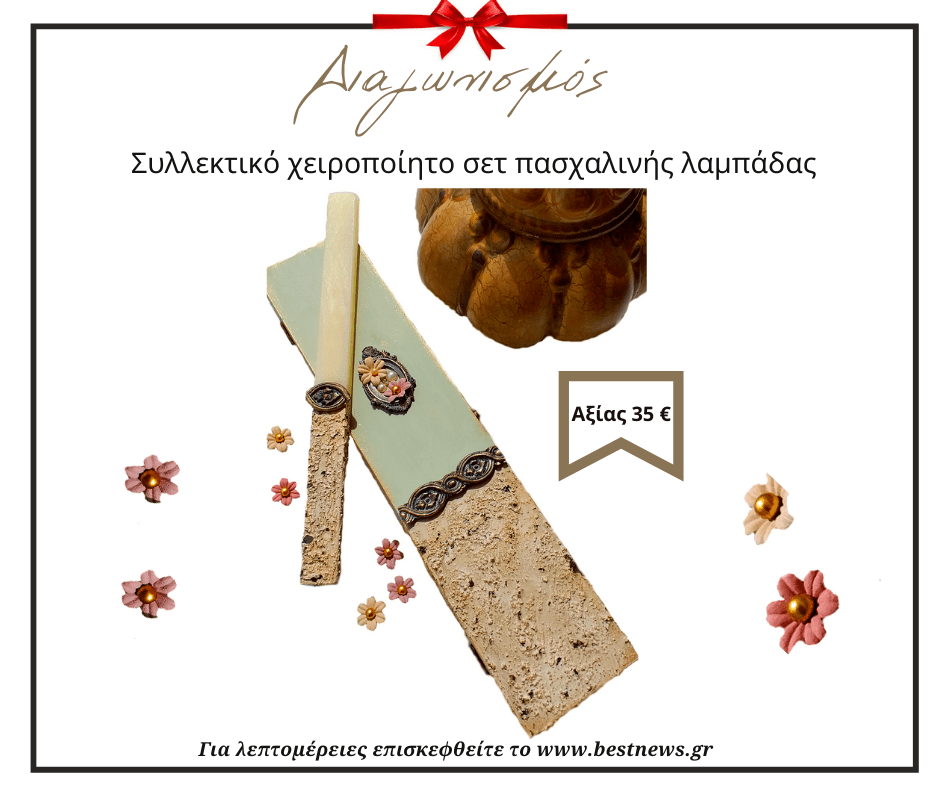 Ένας τυχερός αναγνώστης μας θα κερδίσει αυτό το υπέροχο πασχαλινό σετ που περιέχει μία ιδιαίτερη, ξεχωριστή λαμπάδα με ανάγλυφα στοιχεία.”