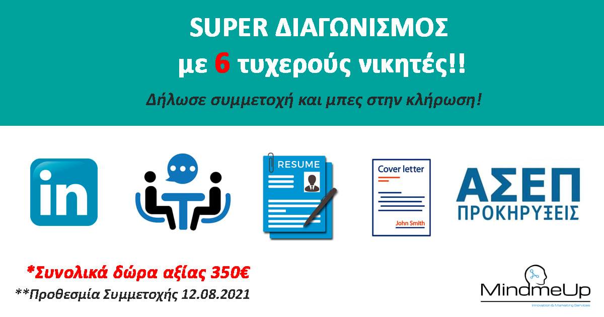 ❗❗❗ 2 τυχεροί/ες θα κερδίσουν το Bronze package αξίας ??€(περιλαμβάνει δημιουργία Βιογραφικού στα Ελληνικά, προφίλ Linkedin και μητρώου ΑΣΕΠ).