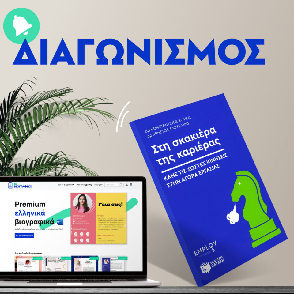 1 δωρεάν αντίτυπο του βιβλίου “Στη σκακιέρα της καριέρας”. Ο διαγωνισμός διενεργείται από ToViografiko.gr, το site που σας προσφέρει πανέμορφα βιογραφικά για να εντυπωσιάσετε.